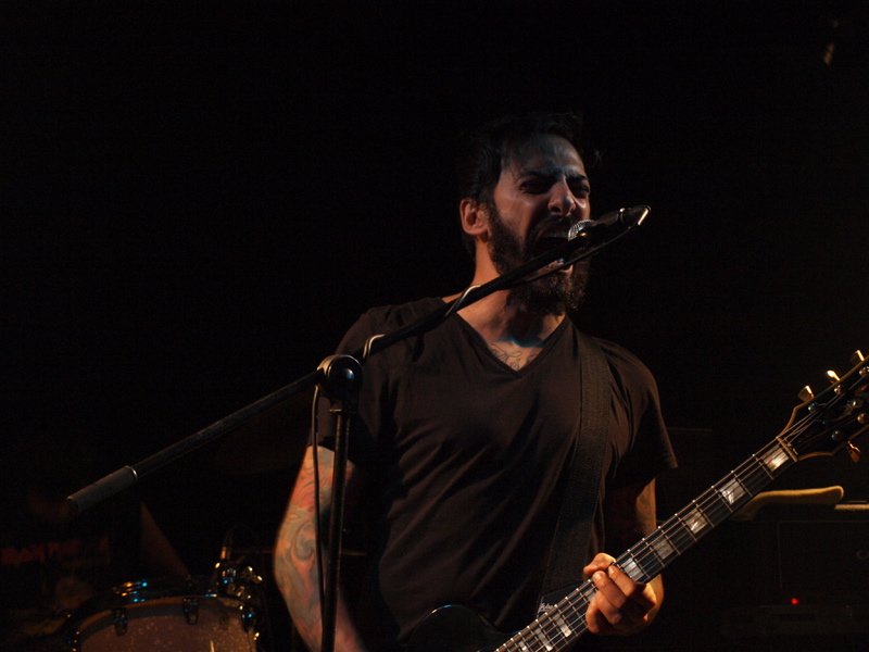 Das beschauliche Kellerabteil des Cassiopeia auf dem ehemaligen Reichsbahnausbesserungswerk in Berlin-Friedrichshain, wo sich der RAW-tempel e.V. niedergelassen hat, beginnt zu beben, als Tephra beim Auftaktkonzert der Deutschlandtournee ihren eigenen TEMPEL präsentieren. Los gehts mit mächtigen Eruptionen: Der A MODICUM OF TRUTH-Kracher ‘Big Black Mountain’ manifestiert sogleich die Direktive des Abends – Riffwände und Sludge Doom mit langen Instrumentalparts. Aber auch Sänger/Gitarrist Ercüment Kasalar zeigt sich von seinem Magengeschwür bestens genesen und schreit sich die Seele aus dem Leib. Das bleibt nicht ohne Folgen, schon nach dem dritten Song flüstert er völlig verausgabt „Ist das anstrengend“ ins Mikro.