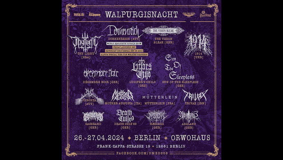 Die dritte Ausgabe des Walpurgisnacht Festivals steigt Ende April im ORWOhaus Berlin. Mit dabei sind unter anderem Dornenreich, 1914 und Décembre Noir.