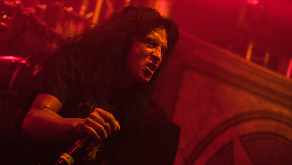SPREADING THE DISEASE in Zeiten von Corona? Anthrax-Frontmann Joey Belladonna lässt das lieber sein und schreitet zur Vermummung.