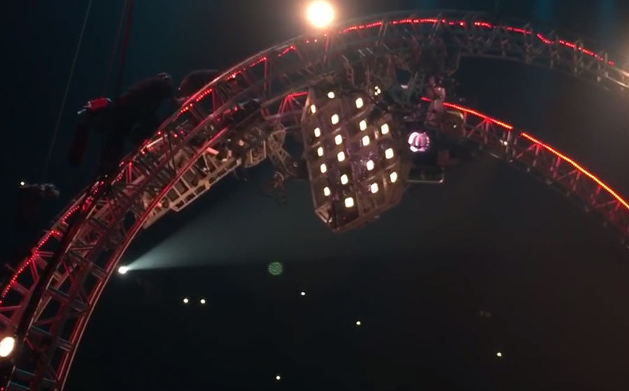 Bei dem allerletzten Mötley Crüe-Konzert kam es zu einer peinlichen Panne: Tommy Lee blieb bei seinem Drum-Solo in dem sogenannten "Crüecifly" stecken.