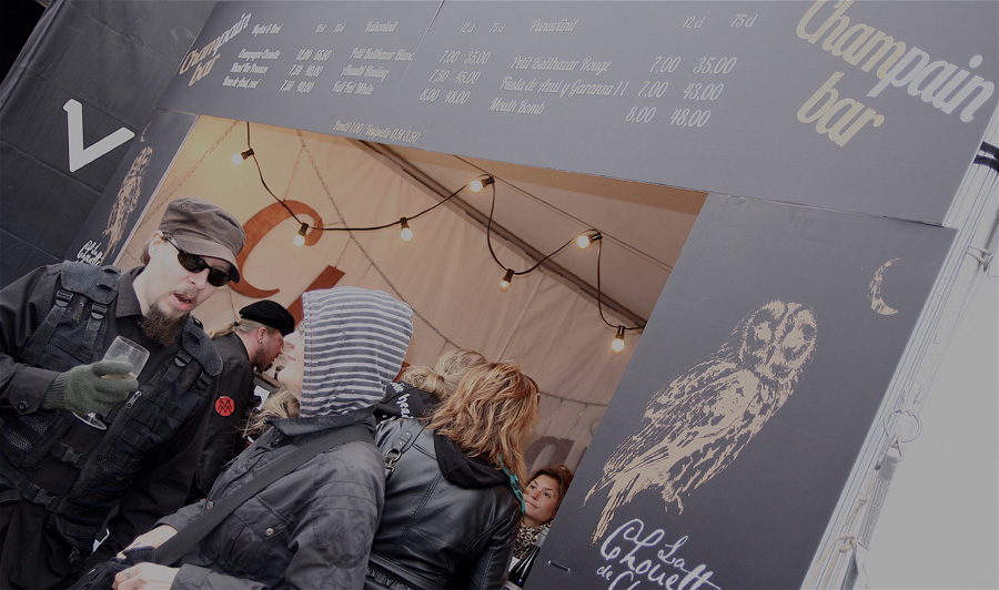 Am ersten Tag läuft es noch wie folgt: Beim Blick auf die Preise wird dem Nicht-Finnen schlecht. Bier 7,50 Euro, Cocktails mit so wohlklingenden Namen wie Gates of Suvilahti oder Valkovenäläinen 11 Euro, ein Weinglas mit 0,1cl Inhalt 7 Euro. Überhaupt: Während in Deutschland auf Festivals keine bis kaum Weinstände zu finden sind, sieht die Sache hier anders aus. Es gibt auch keine Bierläufer, sondern stattdessen einen Erste-Hilfe-Wagen mit Wein und Sekt, den zwei junge Damen durch die Massen ziehen.