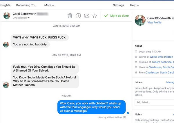 In der weiteren Konversation stellt sich heraus, warum diese Carol so fuchsteufelswild und aufgebracht ist. „Nein, ich arbeite nicht mit Kindern“, schreibt sie (und alle denken: Besser so!). „Ich habe diese Nachricht geschickt, weil ihr alle meinen Sohn betrügt, und ich Fachleute, die Menschen schlecht behandeln, nicht besonders gut ausstehen kann.“