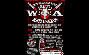 o Exklusiver Verkauf von offiziellen Blood-Brother/Sister Tshirt und WOA-Bloodbags (leckerer Kirschsaft in Blutbeuteln). Die Einnahmen werden einem guten Zweck gespendet