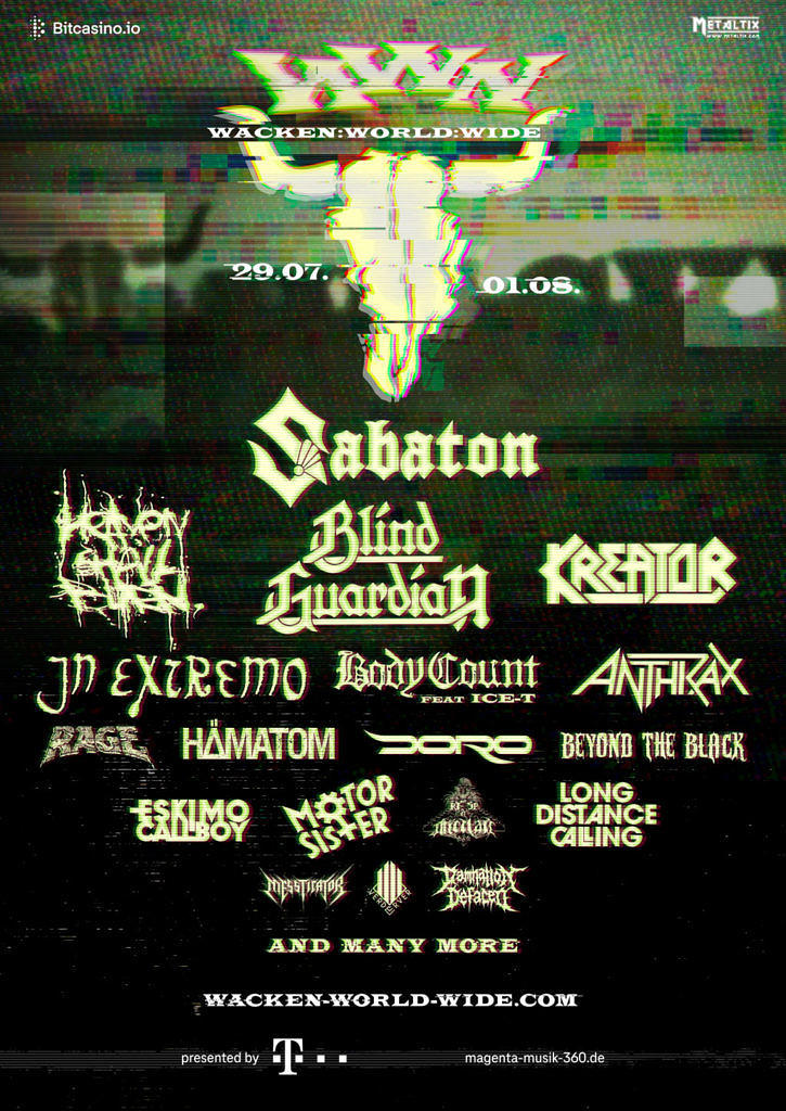 Während alljährlich Musikbegeisterte aus der ganzen Welt nach Wacken reisen, um Heavy Metal zu feiern, bringen die Veranstalter zusammen mit dem langjährigen Partner Telekom dieses Jahr eine völlig neue Erfahrung, als größte Mixed Reality-Metal-Show aller Zeiten, direkt zu den Fans nach Hause. Das Ganze weltweit als revolutionäres Digital-Festival: Im ursprünglich geplanten Festival-Zeitraum von 29. Juli bis 1. August 2020 findet die erste Ausgabe des digitalen Streaming-Festivals Wacken World Wide statt, das vollkommen unabhängig des eigentlichen W:O:A konzipiert ist. Das einzigartige Event ist kostenlos auf wacken-world-wide.com sowie auf der Website und in der App von MagentaMusik 360 und MagentaTV live mitzuerleben!