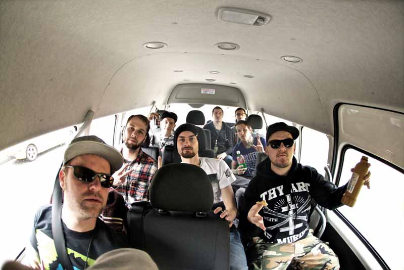 19 von 44Nach 20 Stunden Fahrt geht es ohne Pause gleich weiter mit dem Ausladen und Show spielen.Foto: War From A Harlots Mouth. All rights reserved. -