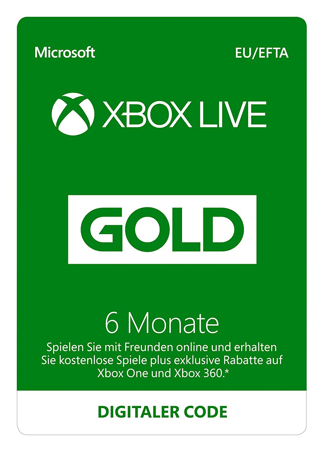 Eine Mitgliedschaft bei Xbox Live Gold bietet verschiedene Vorteile, darunter monatliche Gratisspiele und exklusive Rabatte im Xbox Store. Aber auch für Online-Multiplayer ist solch eine Mitgliedschaft Pflicht. Das Abo für 6 Monate kostet knapp 30 Euro. Wer bei Amazon.de bestellt, muss sich um Lieferzeiten keine Sorgen machen, denn die Mitgliedschaft wird digital als Download-Code verschickt.