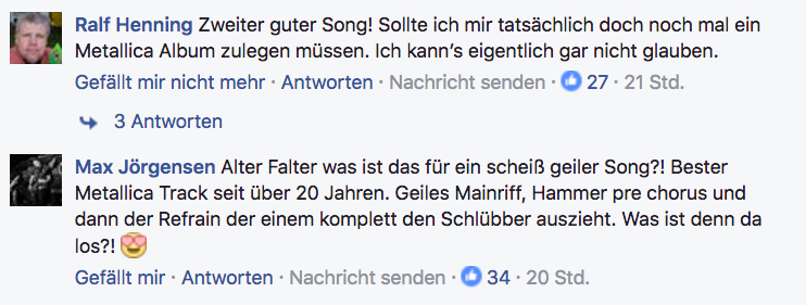 Reaktionen der METAL HAMMER-Leser zu ‘Moth Into Flame’ auf Facebook.