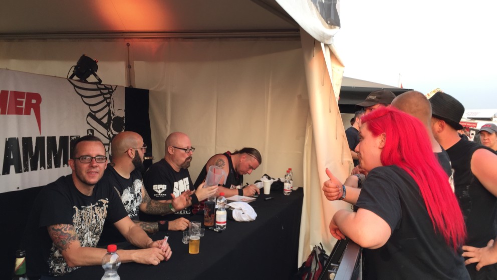 Im Laufe des Nachmittages werden aber auch im Zelt die Temperatur immer höher, das Publikum immer lethargischer. Texas In July müssen daher schon mit härteren Bedingungen kämpfen als ihr Vorgänger. Hinzu kommt der Verlust eines Gitarristen und schlechter Sound. Die Band bemühte sich trotzdem gegen die Hitze anzukämpfen bis auf ein paar Circlepits behält diese aber die Oberhand. Das Zelt wird im weiteren Verlauf des Tages zwar nicht leerer, sondern eher voller, aber die hitzegeplagte Metaller – auf der Suche nach Schatten – begeben sich immer zahlreicher von der Vertikalen in die Horizontale – was es den Bands nicht einfacher macht, für Stimmung bei den Massen zu sorgen.
