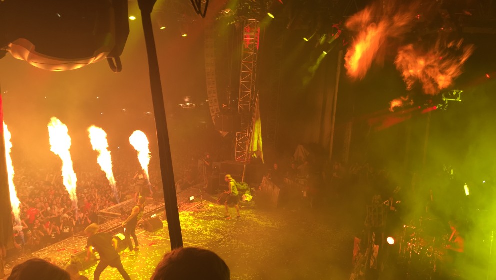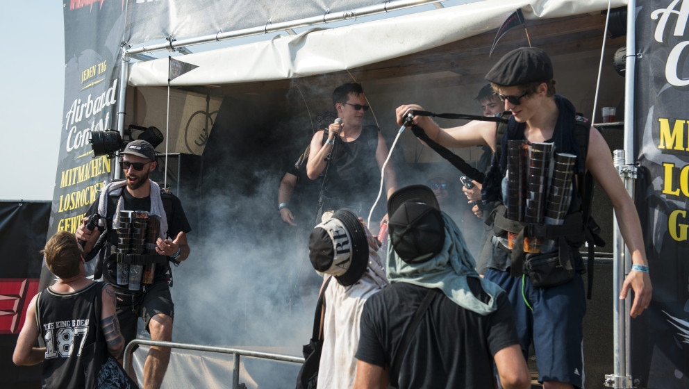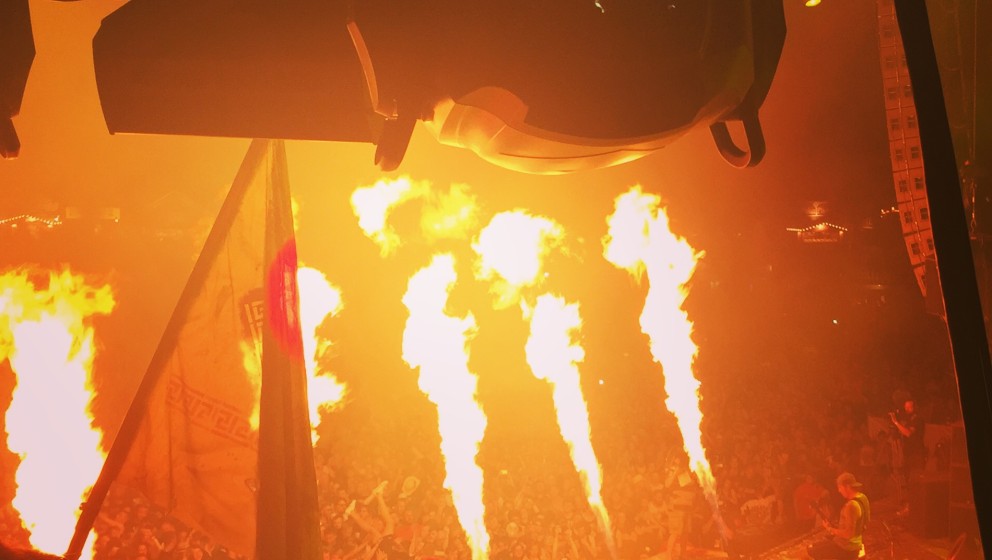 Apropros Spaß: Im Anschluss zerlegt der deutsche Schrecken der Metal-CSU das Infield: Die Party-Maschine Eskimo Callboy kennt auch bei Hitze kein Erbarmen und heizt der stattliche Menge mit ihrer bizarren Mischung aus Trance, Hardcore und Death Metal-Sprenkeln richtig ein. Dämliche Hasenkostüme, blödsinnige Texte á la „We don’t wanna be sober anymore, let’s get fucked up with those bitches and whores”, Sauf-Ansagen und Hits wie ‘We Are The Mess’ oder ‘Crystals’ lassen die jüngeren Spaßversteher des Festivals bereits früh durchdrehen. Nichts für Trueness-Fanatiker, aber alle anderen hatten eine Party!