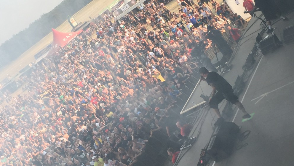 Dann wird es Zeit für die Straßen von New York: Agnostic Front sind angetreten, um den Glitzer von Eskimo Callboy von der Bühne zu wischen – möglichst mit dem eigenen Publikum. Gewohnt routiniert feuern Roger Miret, Vinnie Stigma und Co. gnadenlos ihre stiefelstampfenden Oldschool-Riffs in die Menge, die sich bei Klassikern wie ’Gotta Go‘, ‘For My Family’ aber auch neuen Perlen wie ‘The Old New York’ vor der Bühne in ansehnlichen Moshpits türmen. Trotz der nach wie vor andauernden Hitze haben Band und Publikum Lust aufeinander, sodass auch das harte Cover von ‘Blitzkrieg Bop’ gut ankommt. Sehr schön, sehr Oldschool!